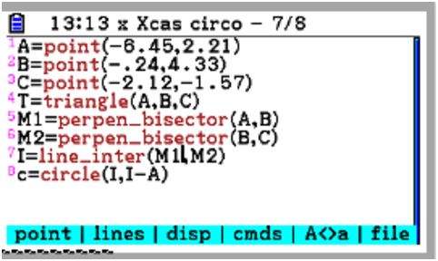 The same can be performed for perpendicular bissectors. For bissectors, computation are much harder and slower, not adapted to a calculator.