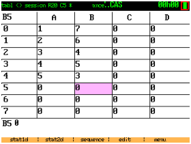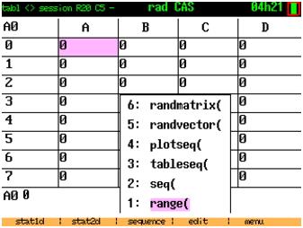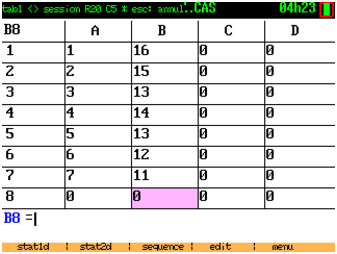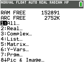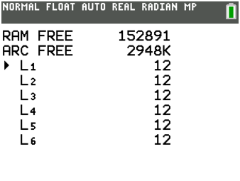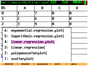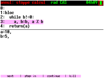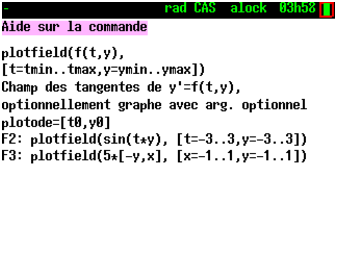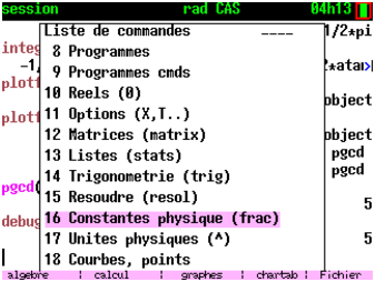 Si la mémoire non fragmentée disponible, affiché en tapant sur la touche var, s’approche de 0, vous pouvez quitter CAS (2nd quit) et le relancer (2nd apps 2). Il y a un peu moins de 100K de mémoire non fragmentée disponible lorsqu’on lance CAS.