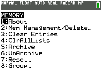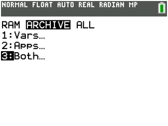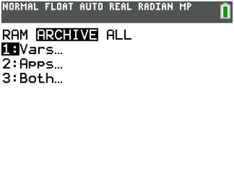 AppIns??de la mémoire d’archive (2nd mem 2 alpha B). Vous pouvez restaurer le package de langue Francais si vous avez l’habitude des menus en français de la calculatrice. Il devrait rester 128K (TI83 Python CE avec français) ou 192K ou 256K (TI83 CE OS 5.3 sans le français) d’archive disponible pour installer une petite application et sauvegarder vos données. - Version mode examen :