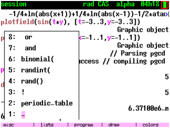 Aujourd’hui, on a plutot l’impression que le temps de développement est consacré à consolider les restrictions d’utilisation en examen ou à rendre l’utilisation uniquement presse-bouton et les constructeurs mettent plus en avant la programmation en Python (qui semble pourtant fort peu utilisée, en tout cas sur calculatrices, à part par quelques enseignants) que les fonctionnalités mathématiques.